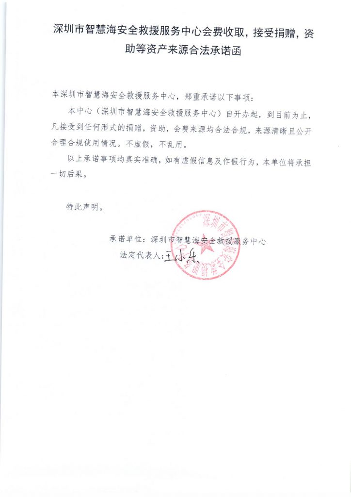深圳市智慧海安全救援服务中心资产来源合法承诺