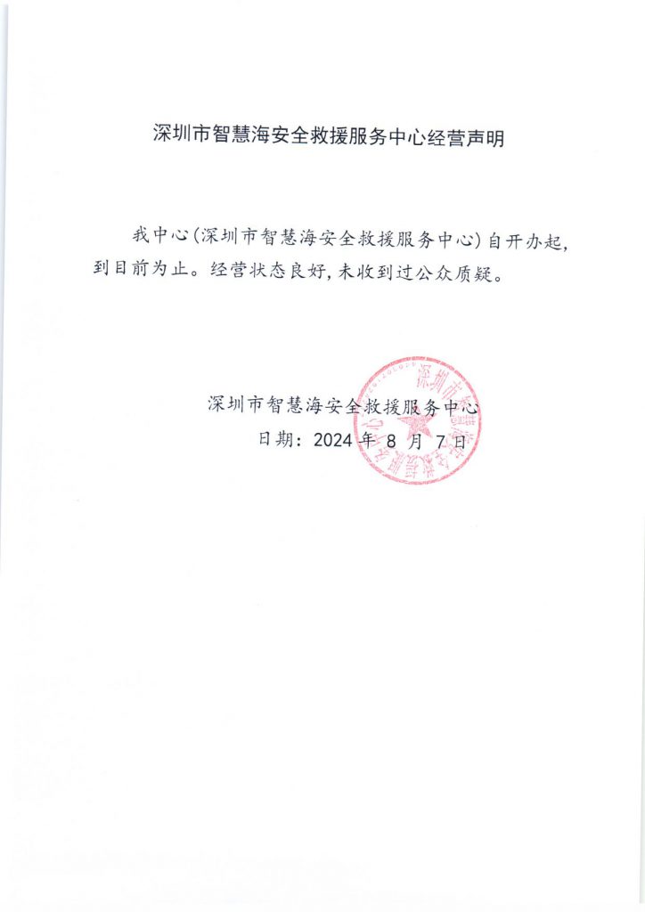 深圳市智慧海安全救援服务中心经营声明