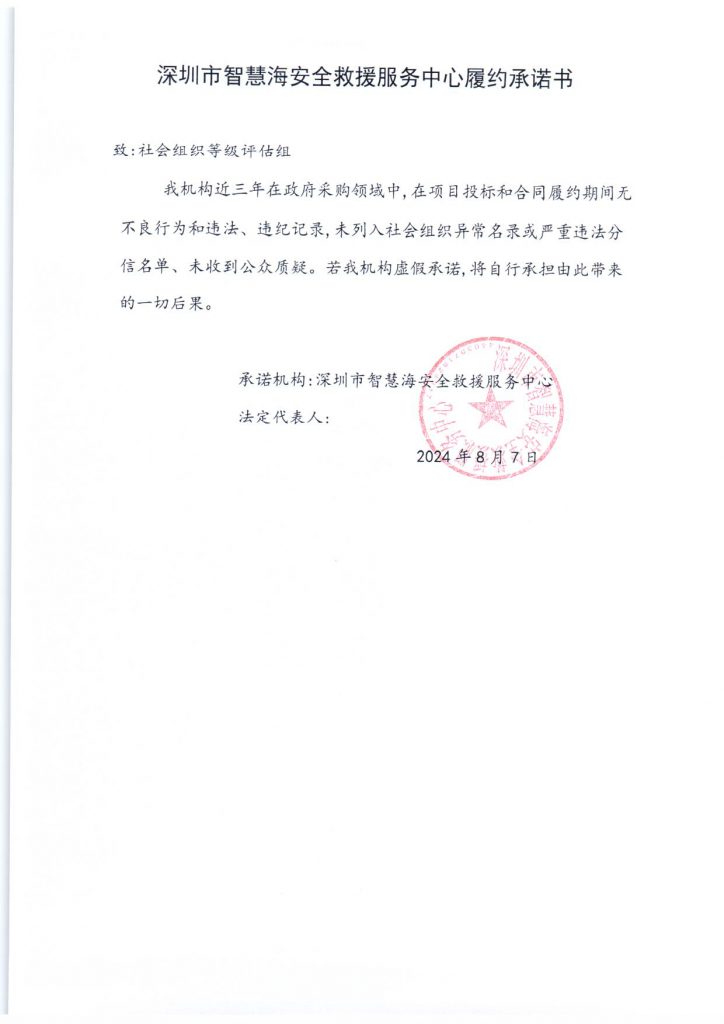 深圳市智慧海安全救援服务中心履约承诺书