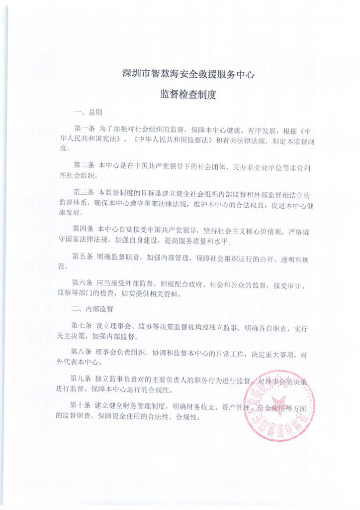 深圳市智慧海安全救援服务中心监督检查制度