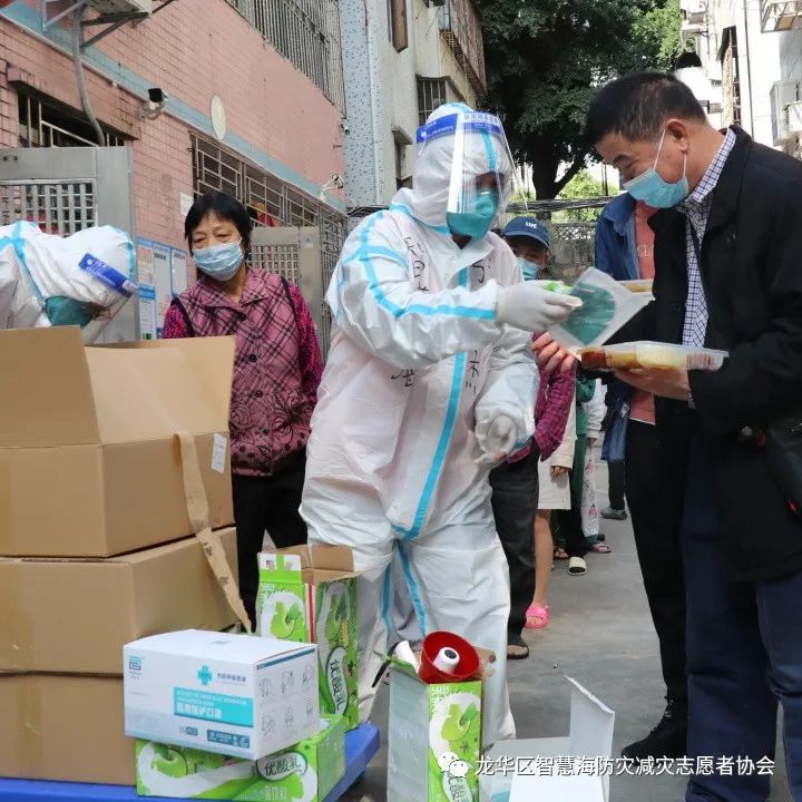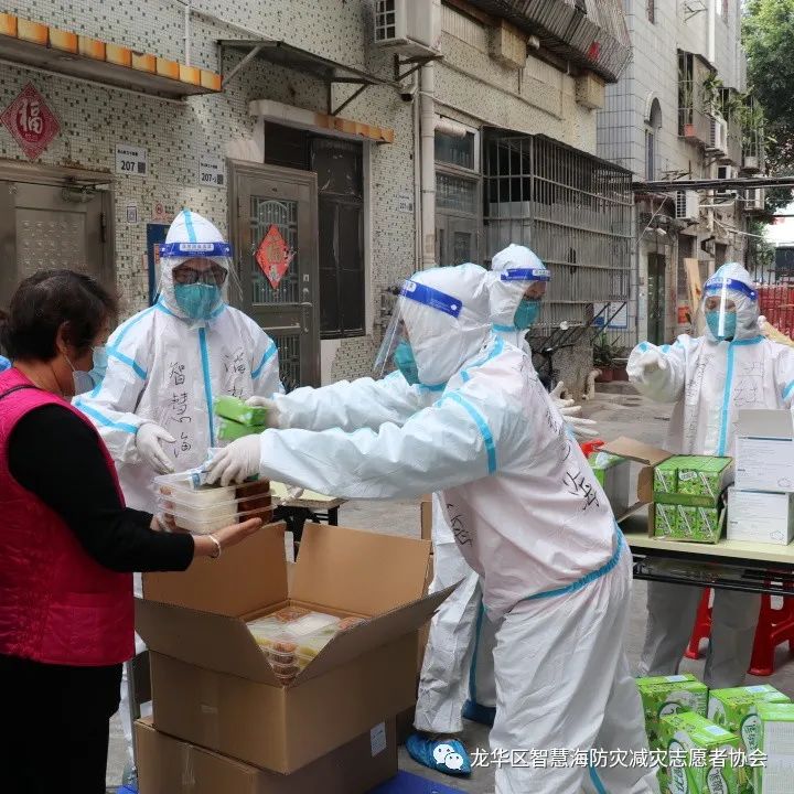 智慧海救援队负责分发封管控区内居民的日常三餐,每天在做好个人防护的前提上,深入封管控区,将一份份热气腾腾的餐食送到每一位被隔离的居民手中。