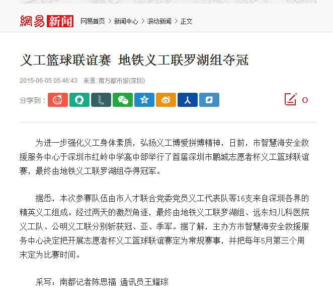 网易新闻-义工篮球联谊赛 地铁义工联罗湖组夺冠