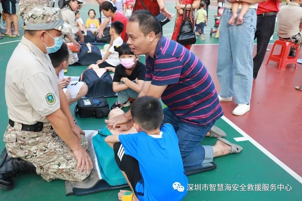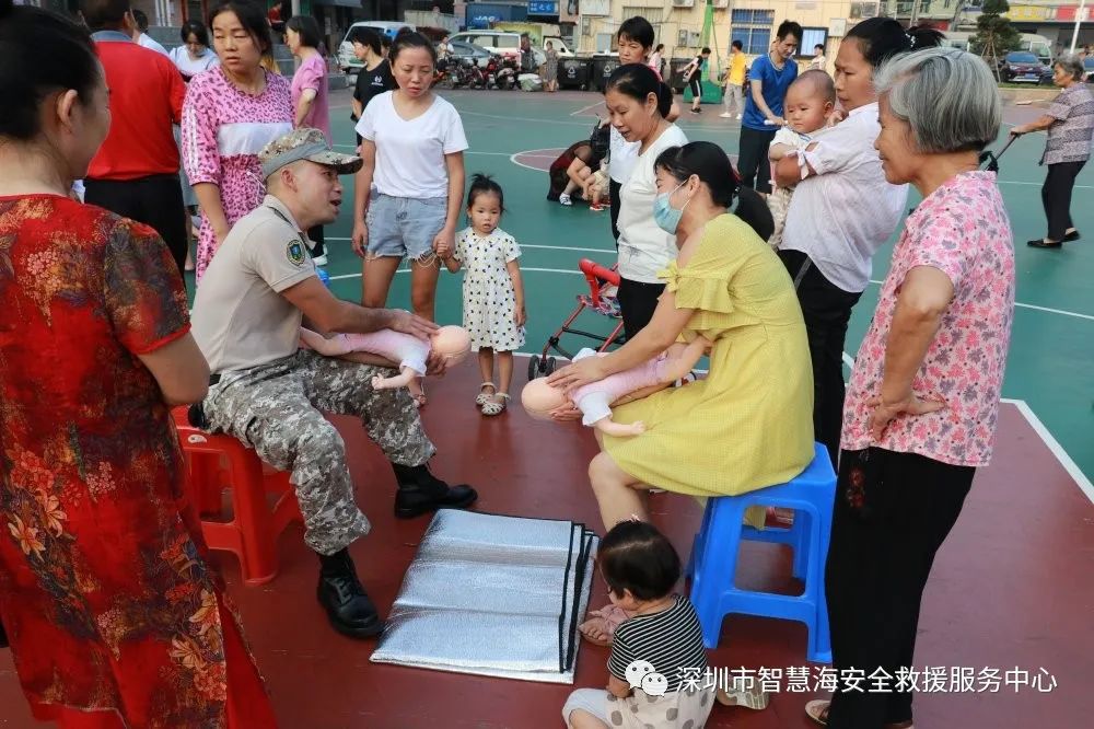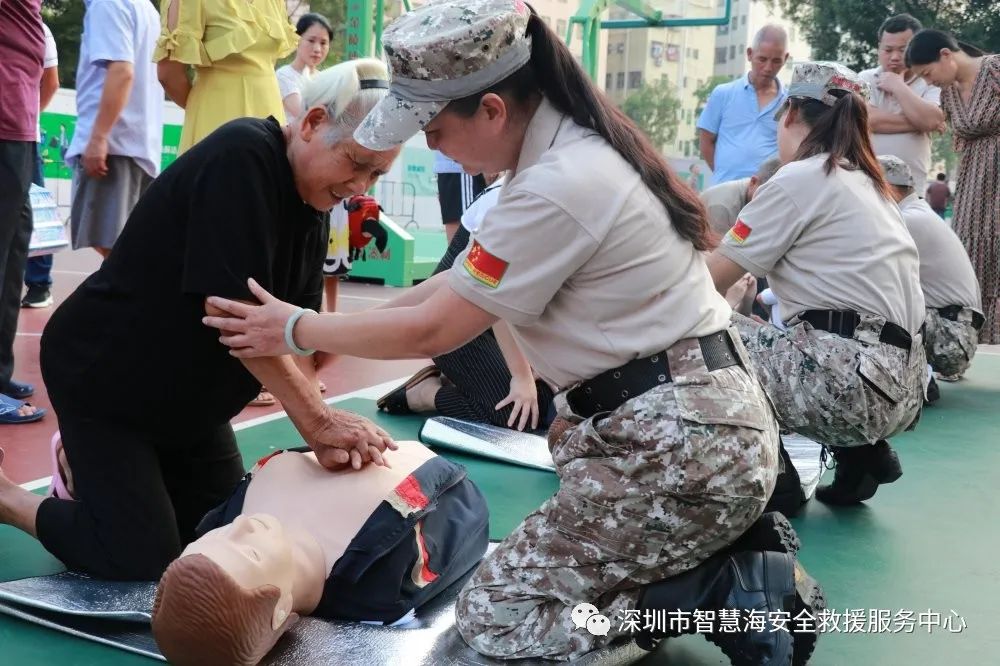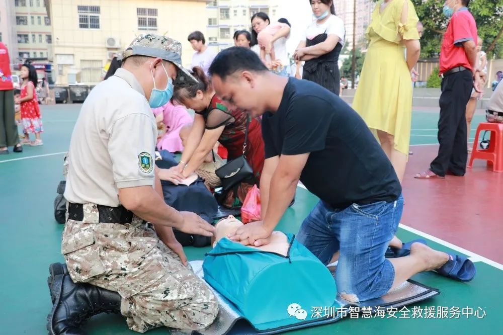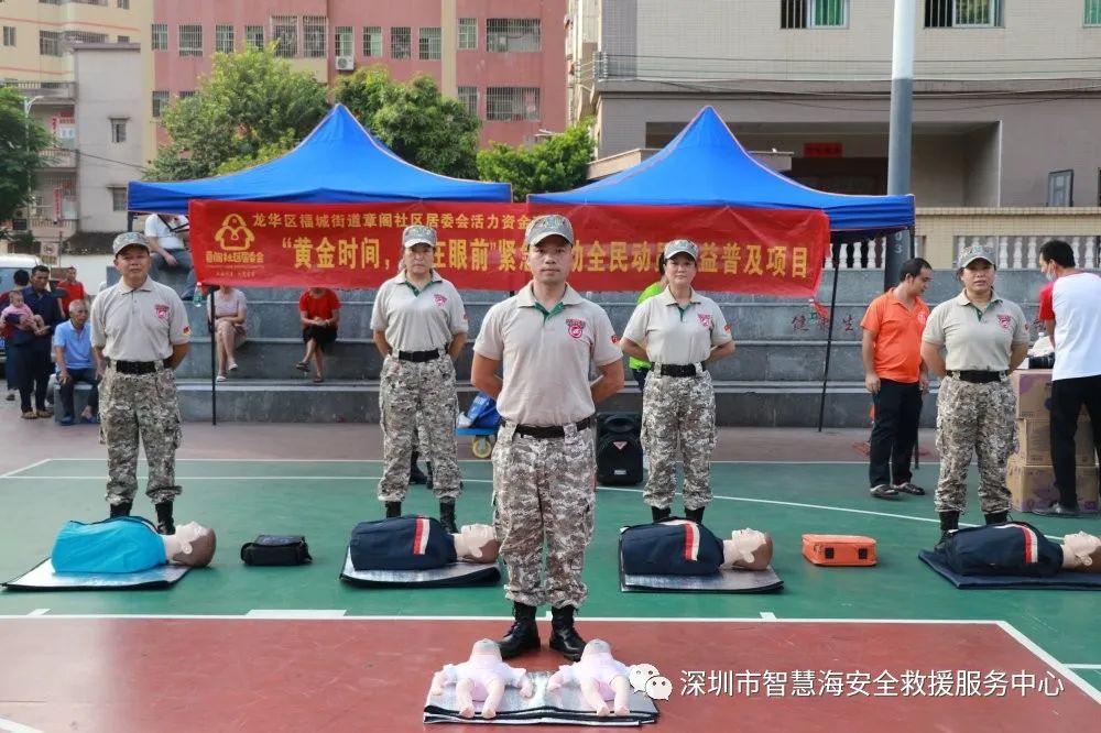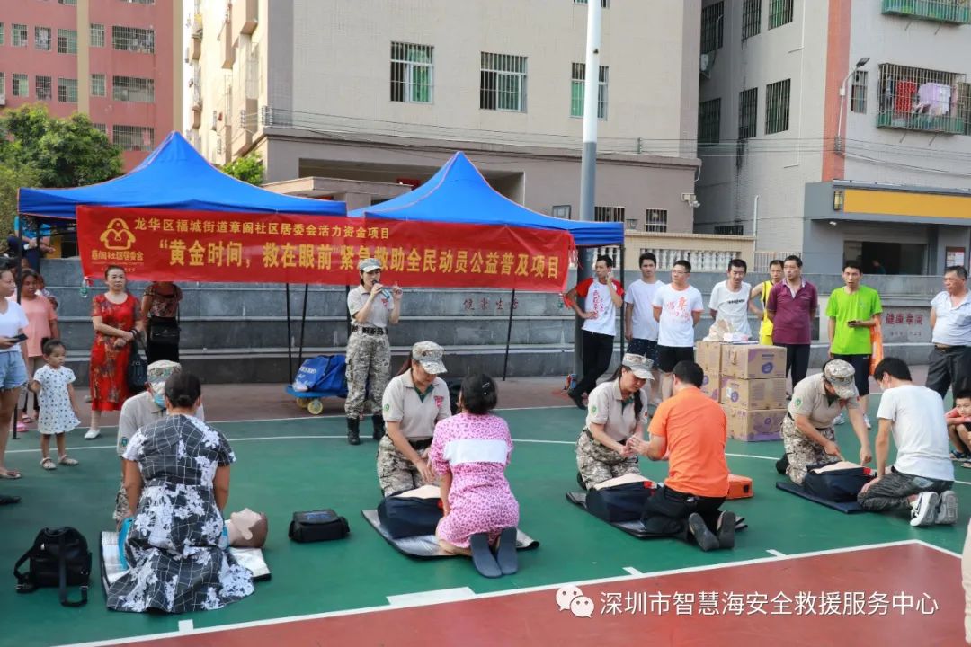 2020年10月4日,由章阁社区居委会主办的龙华区活力资金项目《“黄金急救,救在眼前”紧急救助全民动员公益普及》在章阁篮球场举办。智慧海救援队志愿者们利用国庆假期的休息时间,为居民普及急救技能。活动吸引至少50名热心市民参与练习心肺技能,他们用心学,认真练,纷纷表示急救是非常有必要掌握的知识技能。