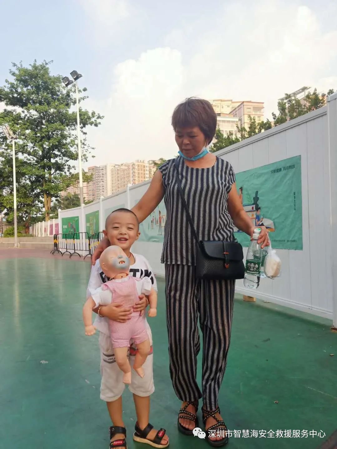 阿婆现身分享孙子两岁时被龙眼肉卡喉的惊险经历,感叹学习急救技能的重要性,鼓励周围居民参与学习。于是很多人来认真看我们演示海姆立克法。家庭是意外伤害的高发区,学急救,其实是为了我们身边最亲近的人。