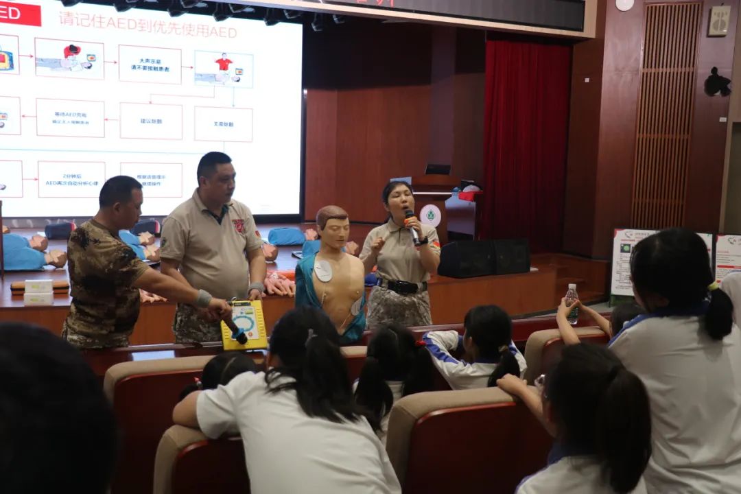 急救知识是生命安全的重要保障。在日常生活中,无论是校园内还是校外,突发意外情况都可能随时发生。学生掌握基本的急救技能,能够在关键时刻迅速反应,采取正确的急救措施,为伤者争取宝贵的抢救时间,甚至挽救生命。这种能力不仅关乎个人的生命安全,也关乎他人的生命安全。 学习急救也助于培养学生的责任感和爱心。通过急救培训,学生们能够意识到自己在紧急情况下的责任和使命,学会关爱他人、尊重生命。这种责任感和爱心是塑造健全人格的重要组成部分,对学生们的成长具有积极的影响。 在本次急救培训中,讲师特别针对4到6年级的学生群体,采用了轻松活泼的语气与生动有趣的配图相结合的教学方法。 通过这种富有趣味性的方式,讲师向同学们深入浅出地介绍了急救知识的重要性,并详细讲解了心肺复苏、AED使用、婴儿气道梗阻处理以及海姆立克急救法等各项技能的适用场景和操作要点。同学们在轻松愉快的氛围中积极参与互动问答,学到了实用的急救技能。