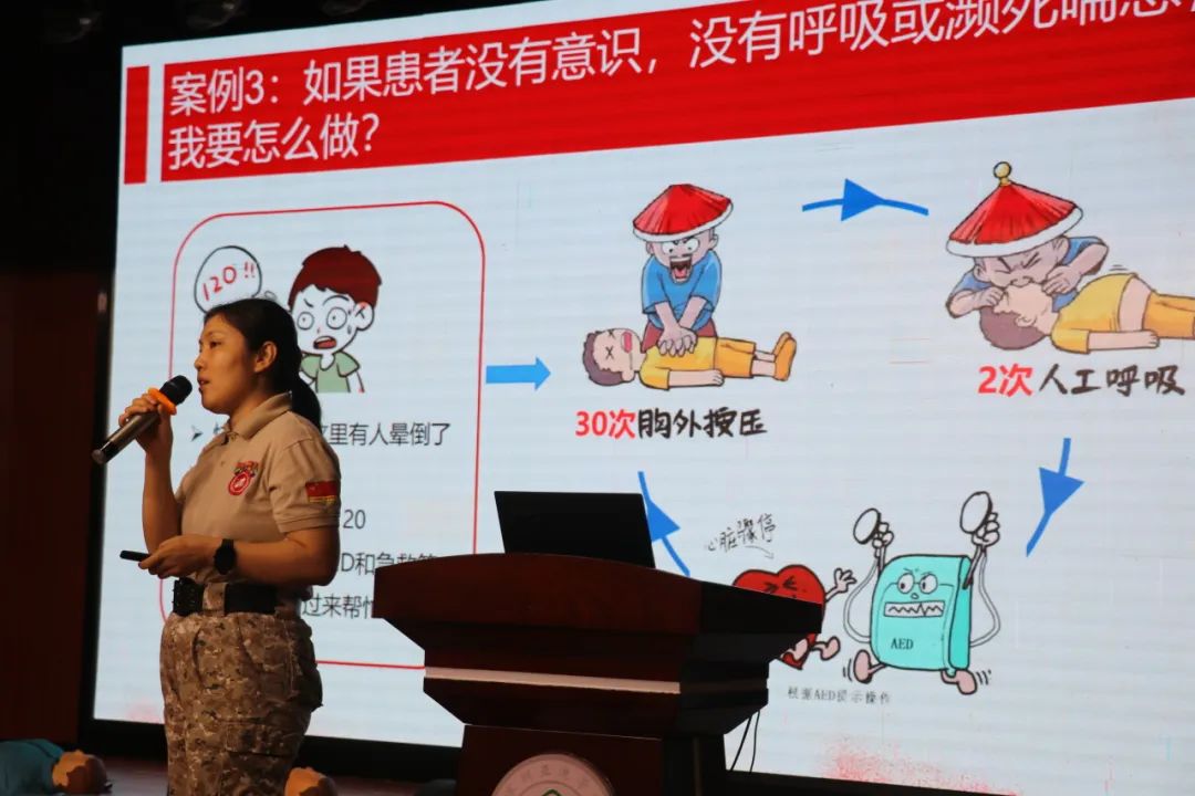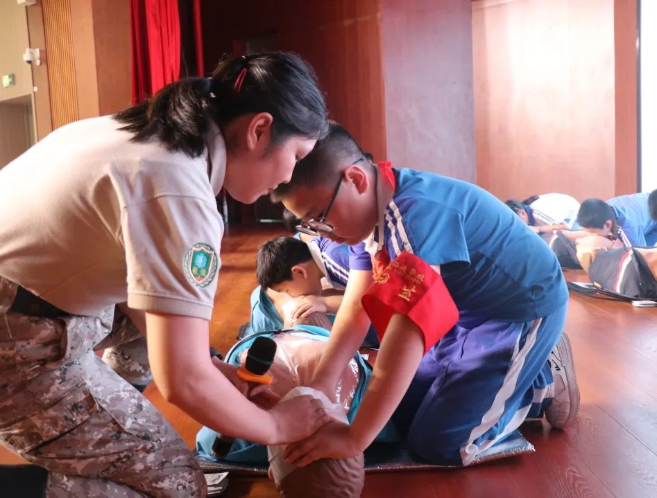 最后,讲师向老师和同学介绍了海姆立克急救法。这一急救技能在处理异物梗阻方面具有显著效果。通过讲师的讲解和同学们的实操练习,大家纷纷表示掌握了这一技能,能够在关键时刻为身边的人提供帮助。