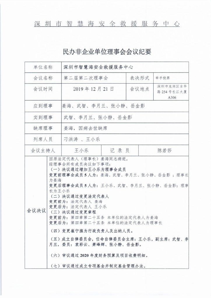 深圳市智慧海安全救援服务中心第二届五次理事会会议通知